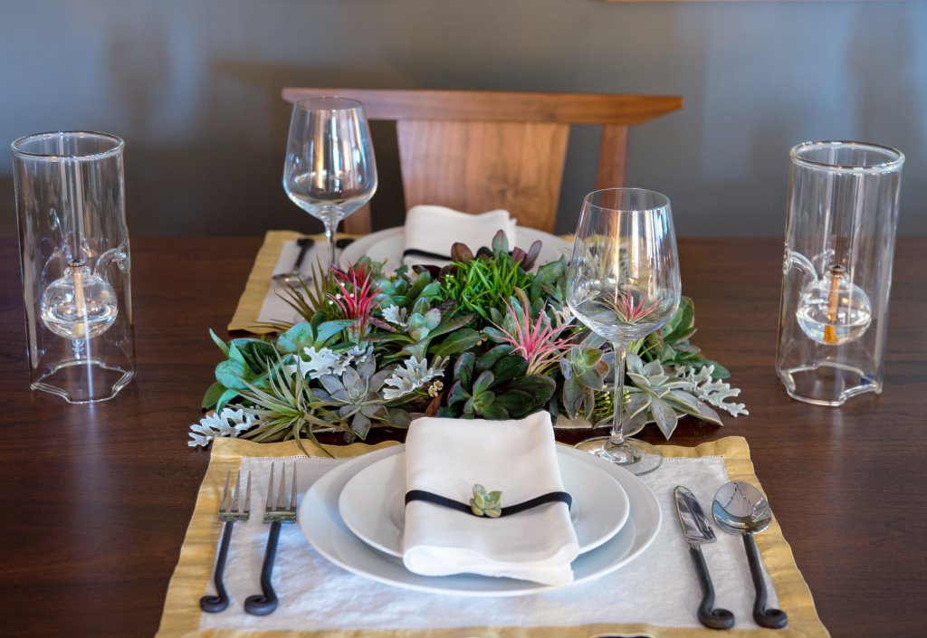 Her advice: bring in greenery—branches, flowers, or herbs—to tie the tablescape to the season. Natural elements provide subtle fragrance and visual softness.